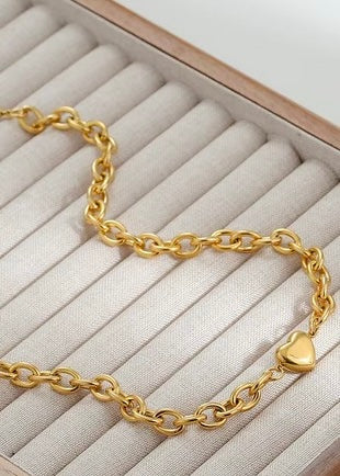 18K Stainless Steel Non-Tarnish Station gold dipped of Puffy Heart with Chunky Chain Necklace, crafted from premium stainless steel with a luxurious 18K gold finish, this necklace features a bubble puffy heart pendants on a statement chain. The non-tarnish properties ensure that your necklace maintains its luster and brilliance for years to come. Product Details: length: 14" Charm size: .25" ext: 2" ext clasp: Lobster Claw Metal finish: Stainless Steel 18K Gold product: Lead & Nickel Compliant anti-tarnish: Tarnish Free, Non-Tarnish Real Gold Dipped Necklace Stainless Steel Necklace Hypoallergenic Necklace Tarnish-Free Necklace Non-Tarnish Necklace Waterproof Necklace Water Resistant Necklace Sweatproof Jewelry Fade Resistant Necklace Anti-oxidation Lasting Shine PVD coated stainless steel heart necklace | Gold Heart Necklace | Tiny Heart Necklace | Stainless-Steel Necklace | Hypoallergenic Necklace | Everyday Necklace | Hearts | Heart Charm |
